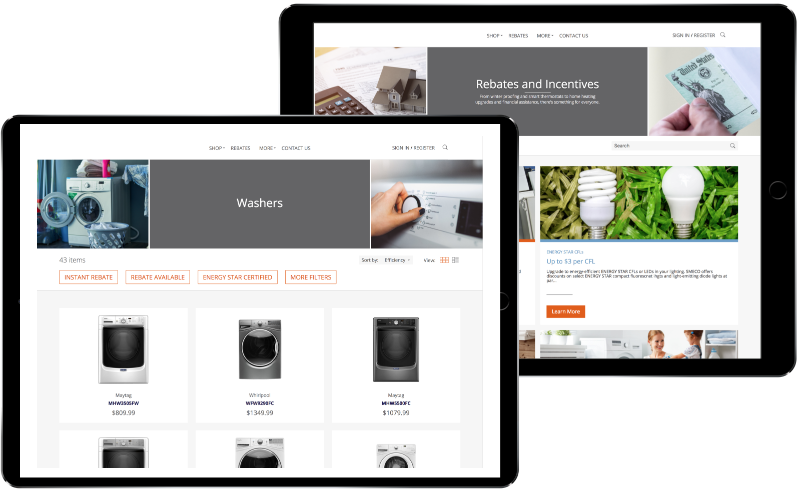 Connect to appliance and equipment providers to find the right products. Compare product prices across retailers. Understand product operating costs. See what qualifies for rebates.
